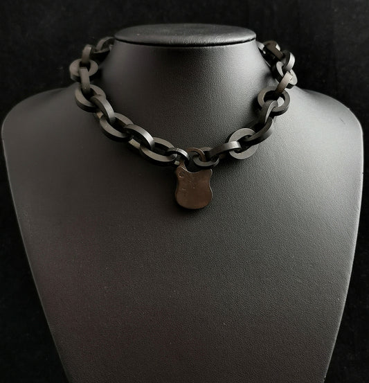 Antique Victorian Vulcanite choker necklace, Padlock clasp, Mourning