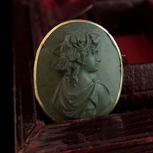 Antique Lava cameo brooch, 9ct gold, 19th century