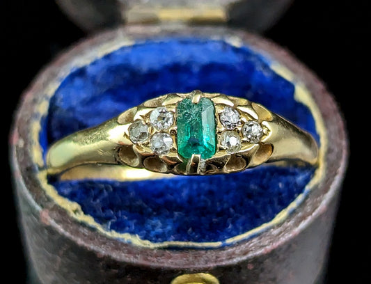 Antique Emerald and Diamond ring, 18ct gold, Victorian