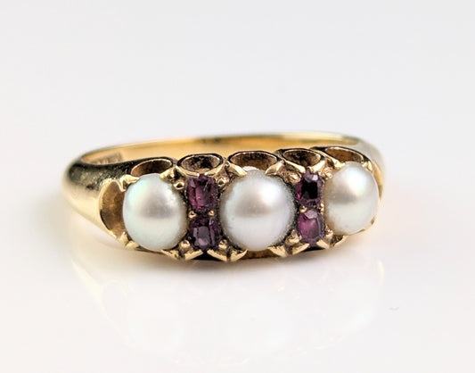 Antique Ruby and Split pearl ring, 18ct yellow gold