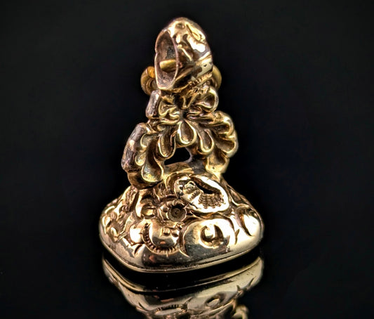 Antique Carnelian seal fob pendant, Swan, 9ct gold cased