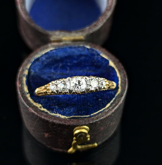 Vintage Diamond half hoop ring, five stone, 18ct yellow gold