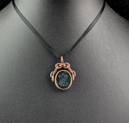 Antique intaglio swivel fob pendant, 10ct gold, Victorian