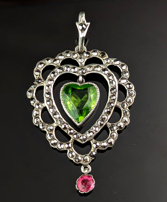 Antique sterling silver and enamel fob pendant, Lion and Fleur de Lis