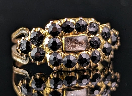 Antique Regency Mourning ring, Vauxhall glass, 15ct gold