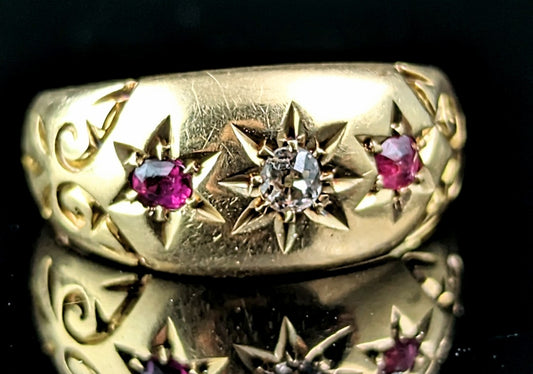 Antique Star set Ruby and Diamond ring, 18ct gold, Gypsy set