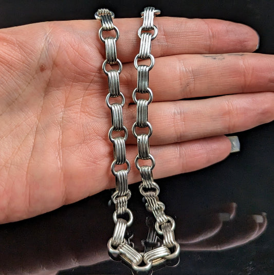 Antique Edwardian sterling silver Albert chain, tooth fob