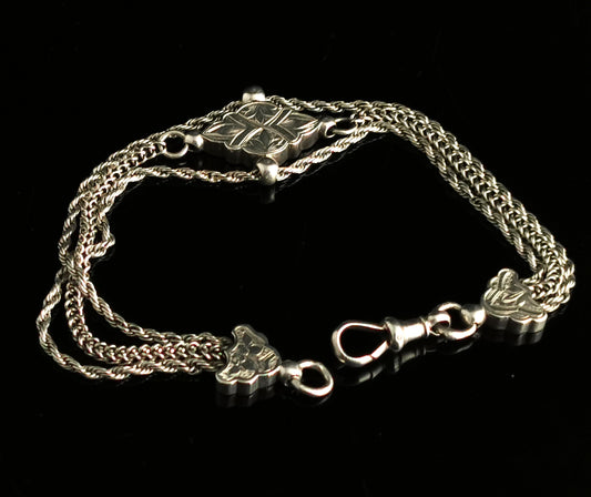 Antique Victorian silver Double Albert chain, watch chain, fob