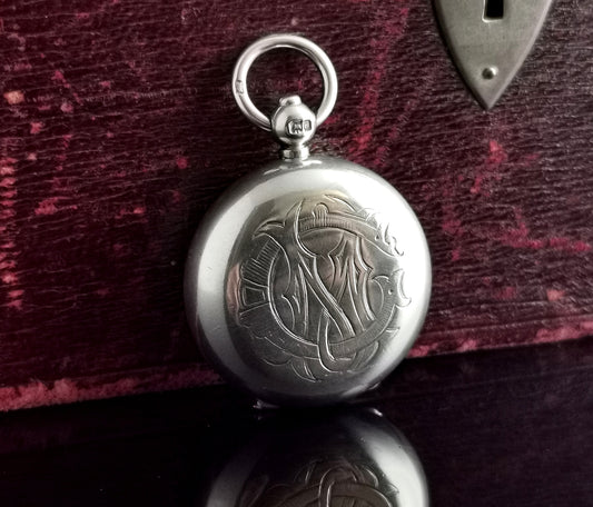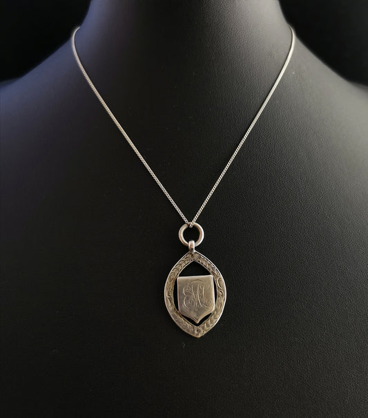 Vintage sterling silver locket necklace, 1970s, floral engraved