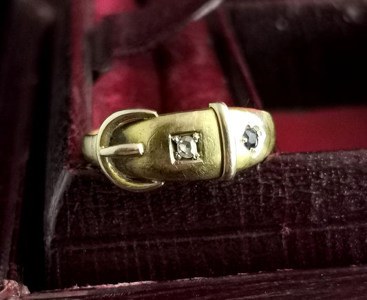 Victorian 18ct gold buckle ring, Sapphire and Diamond
