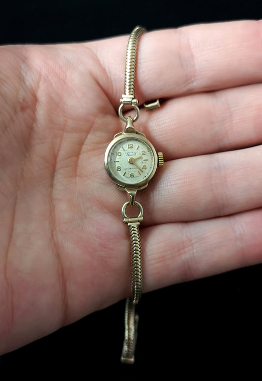 Vintage 9ct gold ladies wristwatch, 1950's, Snake bracelet
