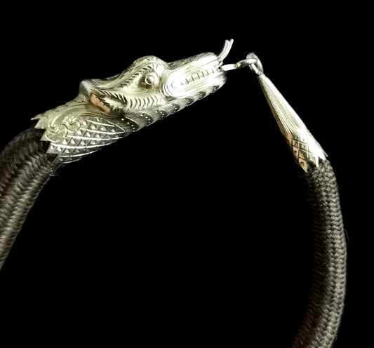 Victorian mourning bangle, 9ct gold snake, hairwork, ouroboros