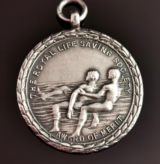 Vintage sterling silver watch fob pendant, medal, Lifesaving