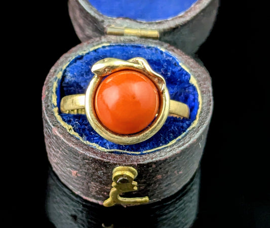 Antique Coral snake ring, 22ct yellow gold, Victorian