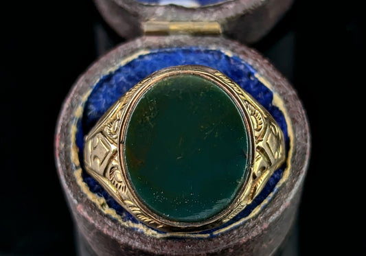 Antique Bloodstone signet ring, 9ct gold, Victorian