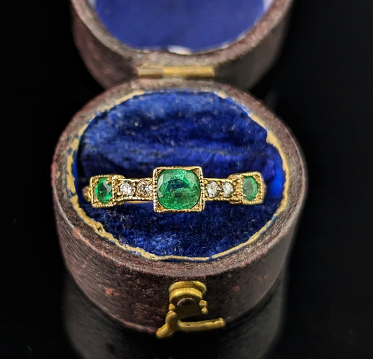 Antique Emerald and Diamond ring, 15ct yellow gold