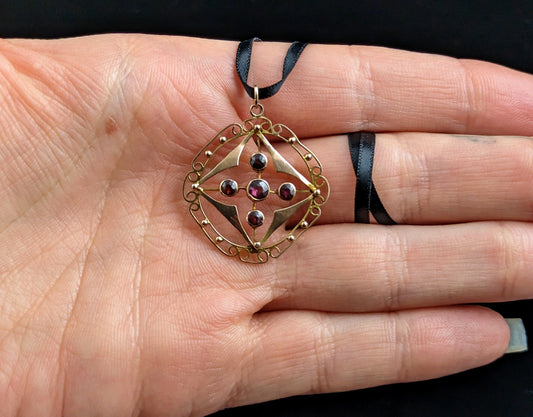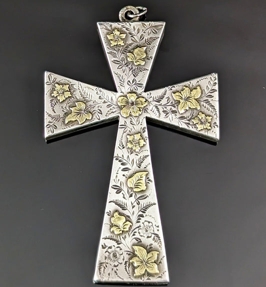 Antique Victorian Aesthetic cross pendant, sterling silver and 9ct gold
