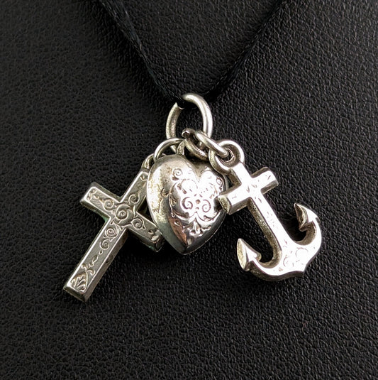Antique Faith, Hope and Charity charm, Pendant, Sterling silver, Victorian