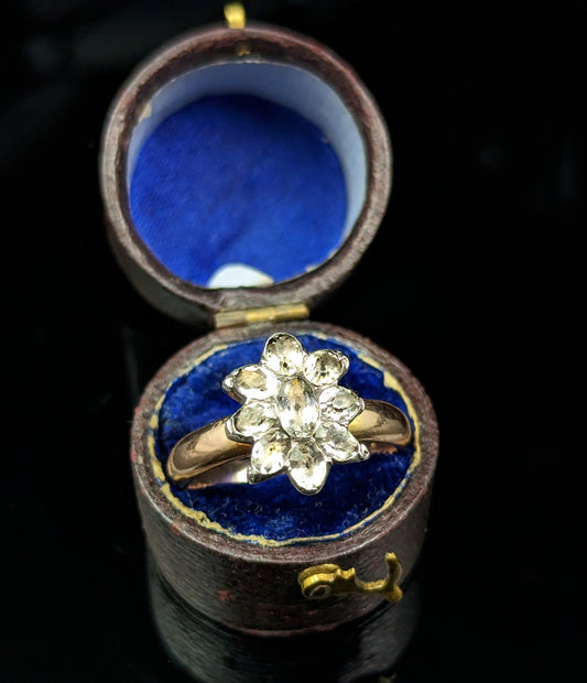 Antique Georgian black dot paste cluster ring, Silver and 9ct gold