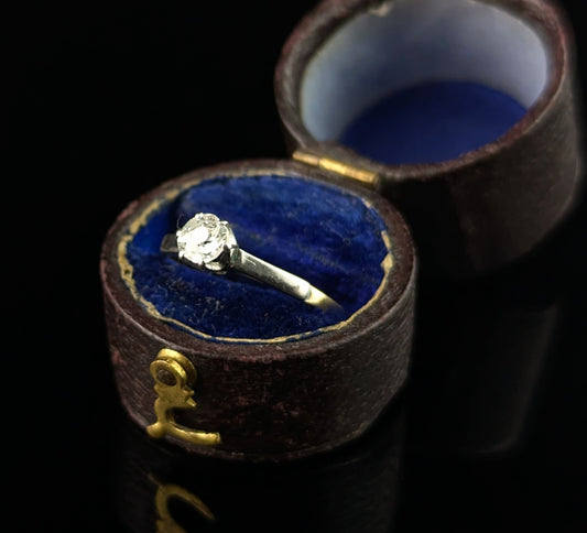 Antique Art Deco Diamond solitaire ring, 18ct gold and platinum, Engagement ring
