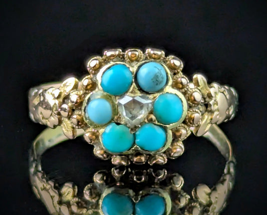 Antique Regency Turquoise and Diamond flower ring, 18ct gold