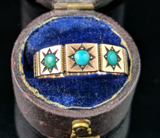 Antique 9ct Rose gold Turquoise gypsy set ring, Victorian