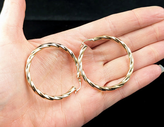 Vintage 9ct gold twist hoop earrings, large size hoops