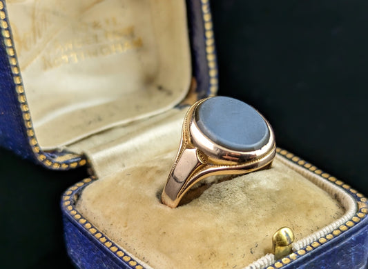 Antique 9ct gold Sardonyx signet ring, pinky ring