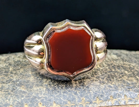 Antique Carnelian signet ring, 9ct gold, Shield shaped