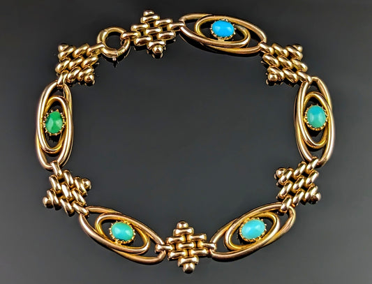 Antique 9ct gold fancy link bracelet, turquoise, Edwardian