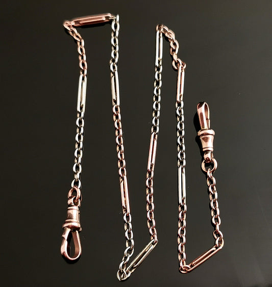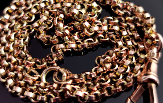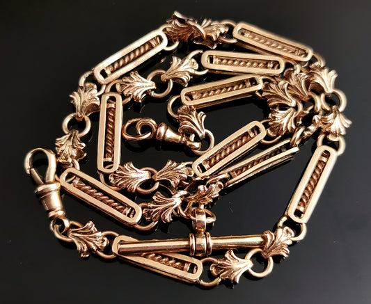 Antique 9ct Rose gold Albert chain, curb link, watch chain necklace, Victorian