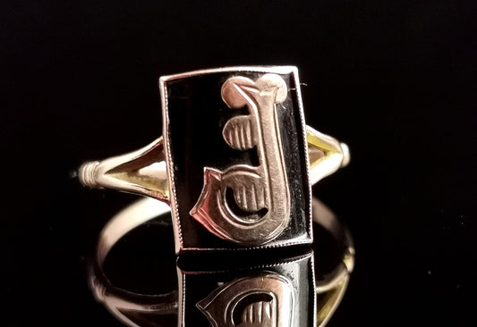 Antique Mourning ring, 9k Rose gold, onyx and Edwardian