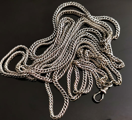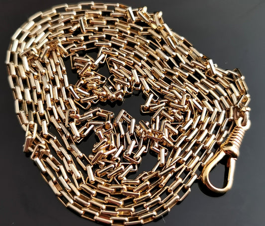 Antique 9ct gold longuard chain necklace, Edwardian, muff chain