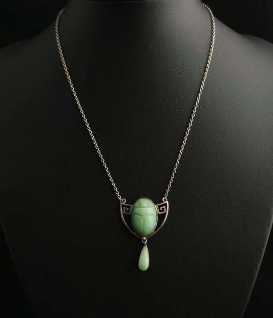 Arts and crafts scarab beetle necklace, Sterling silver and Amazonite