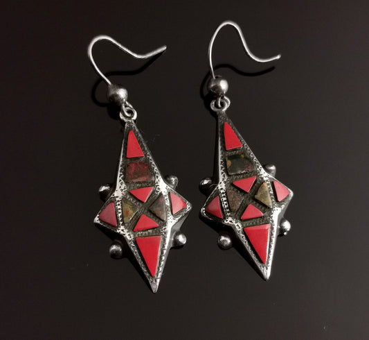 Vintage 9ct yellow gold dangly earrings, Victorian revival
