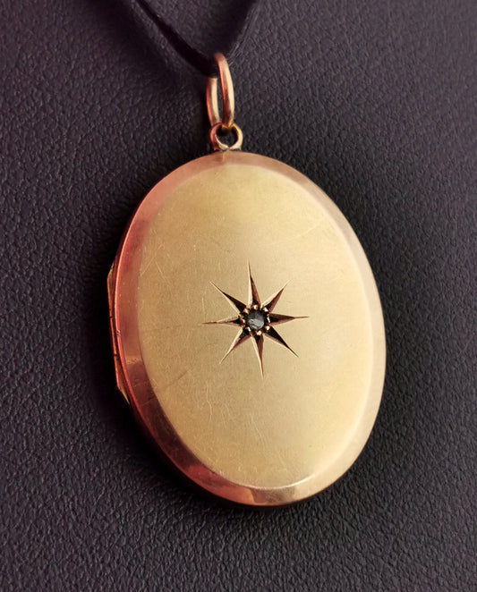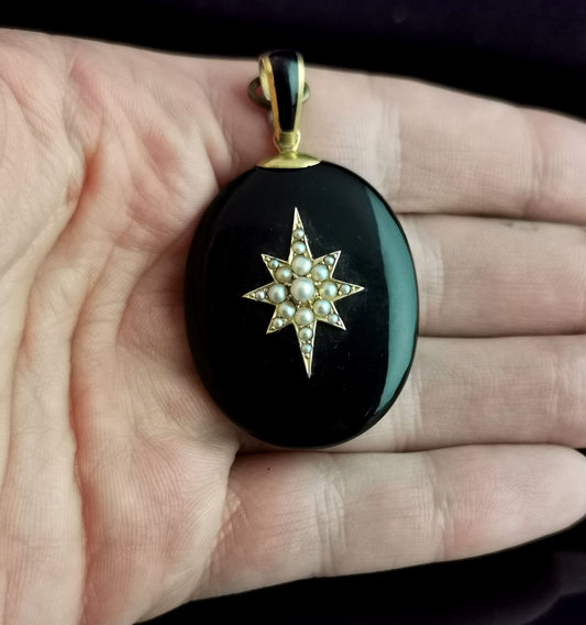 Victorian Onyx mourning locket, 15ct gold, pearl star