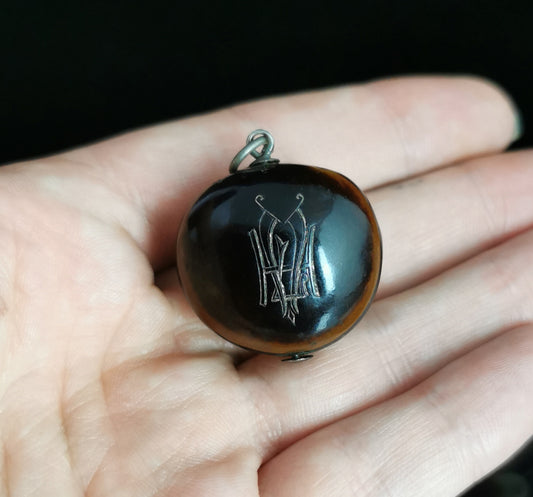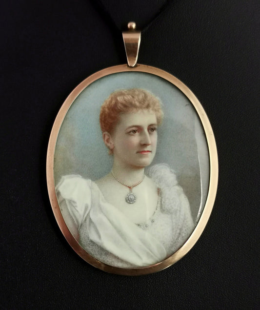 Antique portrait miniature, mourning pendant, 9ct gold, cased