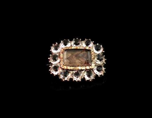 Antique Georgian mourning brooch, 9ct gold, hairwork and paste