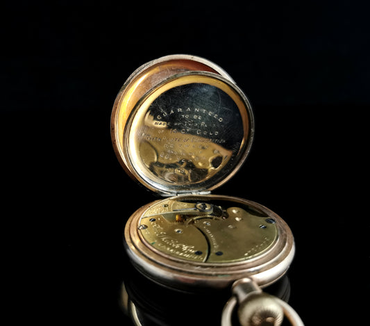 Antique half hunter pocket watch, Gold plated, Waltham Mass