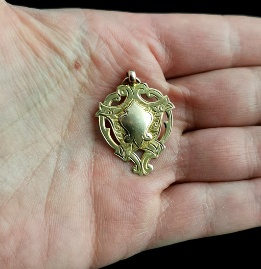 Art Deco 9ct gold shield fob, pendant, watch fob