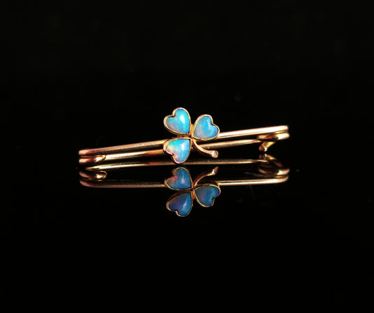 Antique Opal clover brooch, Shamrock, 15ct gold pin