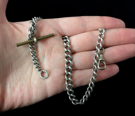 Vintage silver Albert chain style necklace, Belcher link