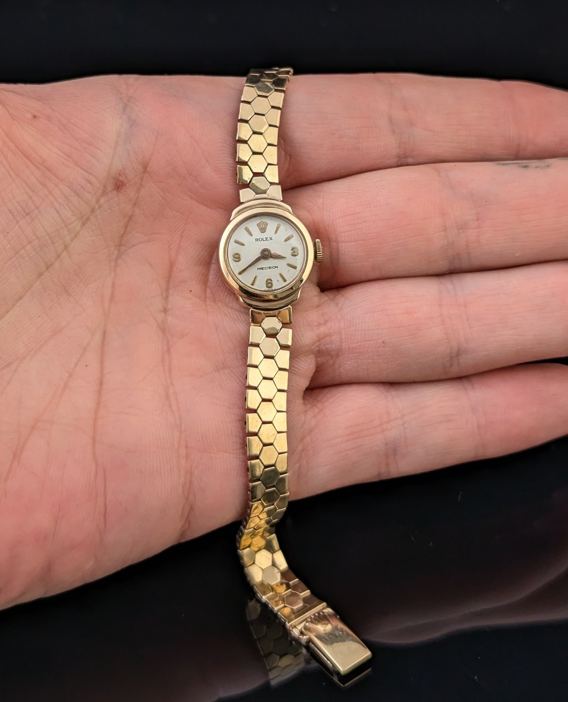 Vintage 9ct gold Ladies Rolex precision wristwatch, Bracelet strap