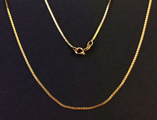 Vintage 9ct yellow gold chain necklace, wavy herringbone link, 1970s, 24 inch