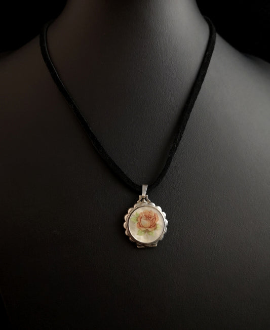 Vintage Sterling silver and 9ct Rose gold fob, snake chain necklace