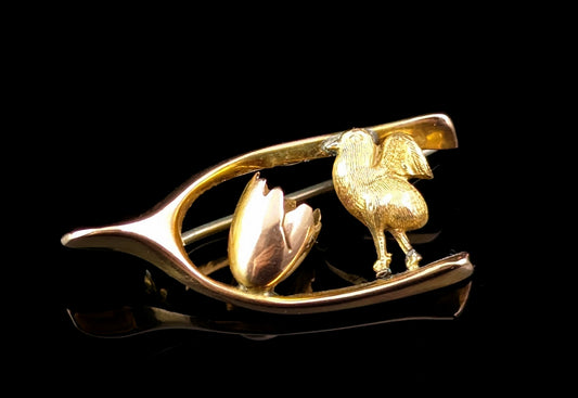 Antique Victorian Chick and Egg brooch, 9ct gold, Lucky Wishbone