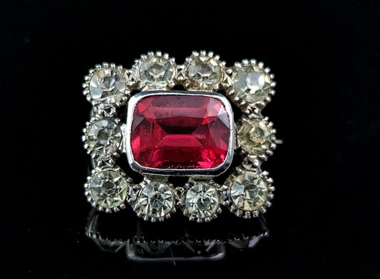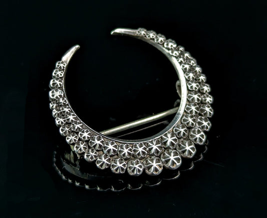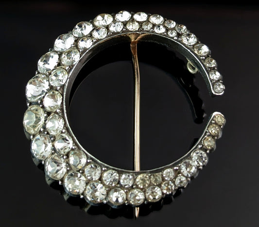 Antique Paste Crescent moon brooch, 9k gold and silver