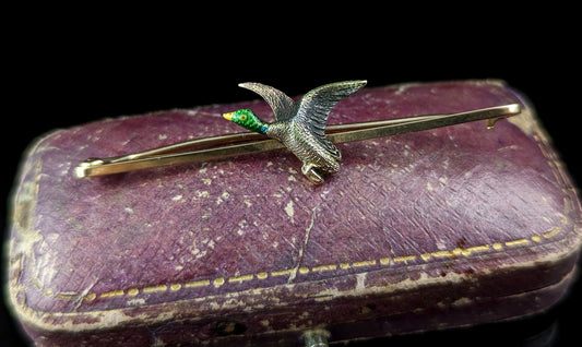 Antique Duck brooch, 15ct gold and Platinum, enamel