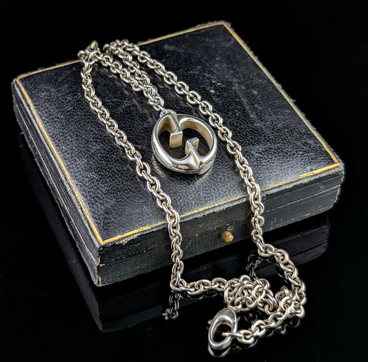 Vintage Gucci sterling silver interlocking G pendant necklace, silver chain