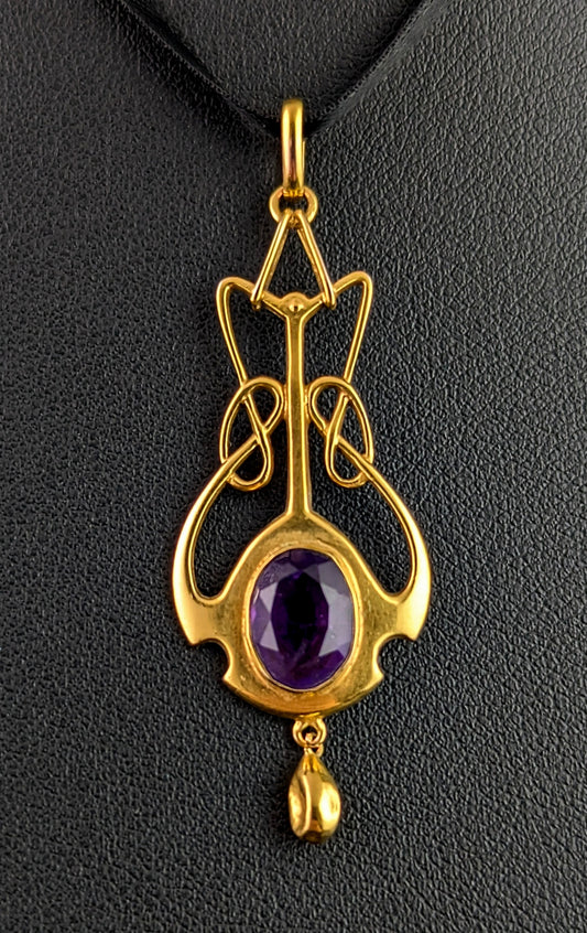 Antique Art Nouveau amethyst pendant, 9ct yellow gold